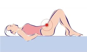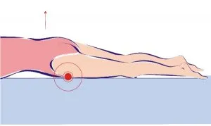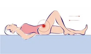 Lie on your back, bend your knees, rest your feet on the floor, and put your hands below your lower back. Try to press your hands with your lower back, simultaneously trying to raise your hips from the ground, tensioning your muscles just “like on the toilet”.