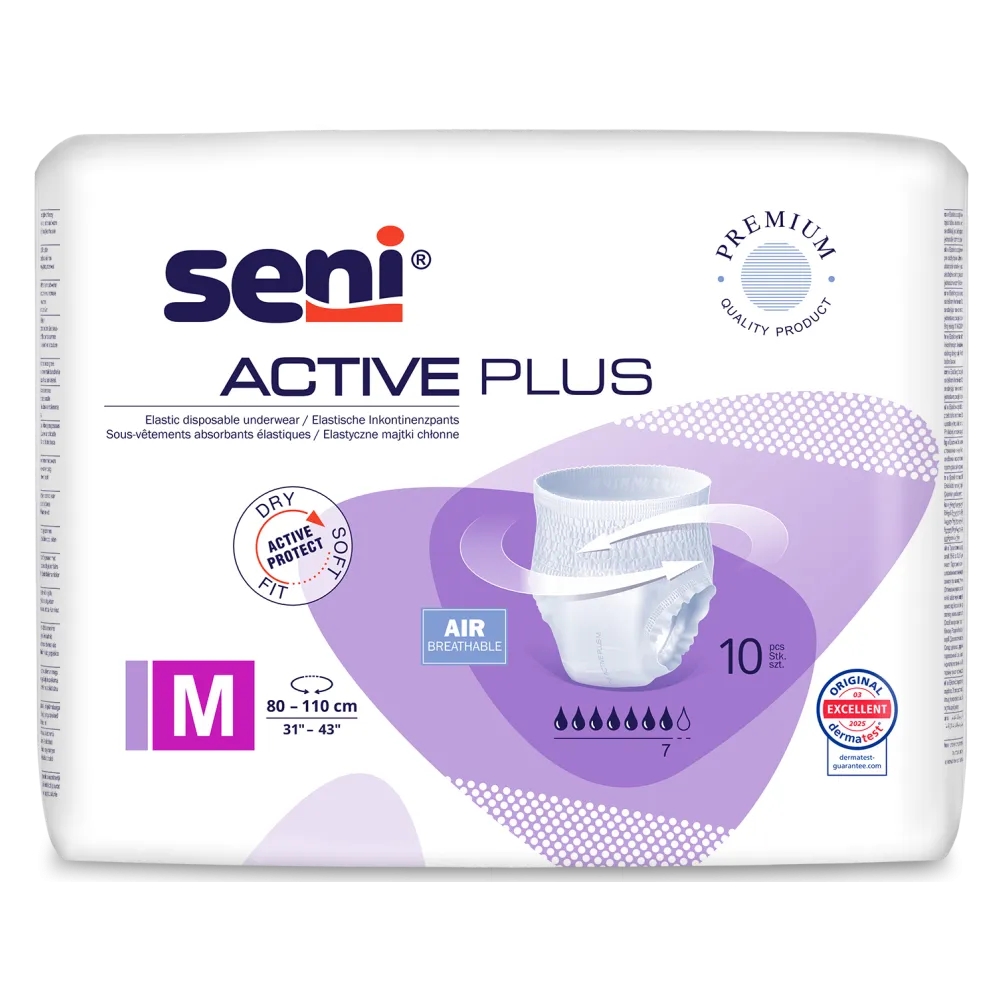 Seni Active Plus breathable disposable underwear for people with heavy urinary incontinence.