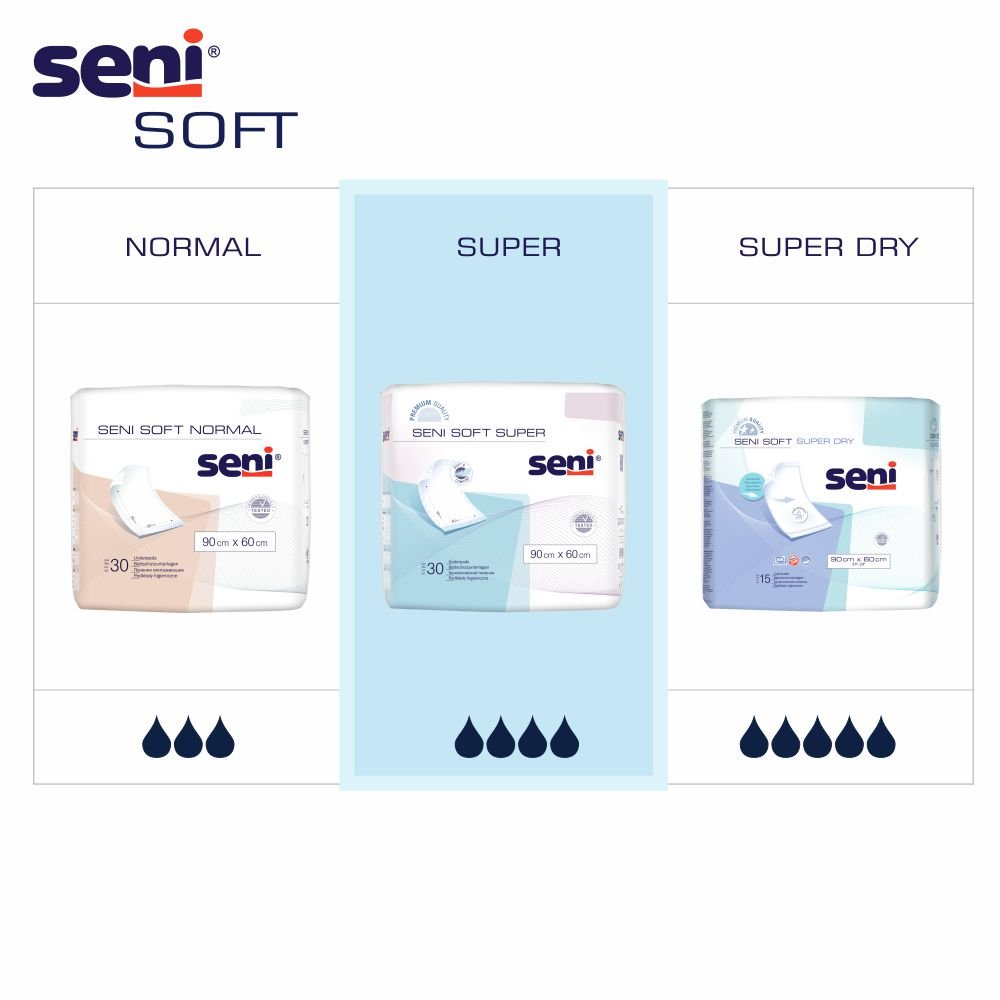 Seni Soft Super hygienic underpads are designed to protect the bed or other surface when changing the absorbent product.