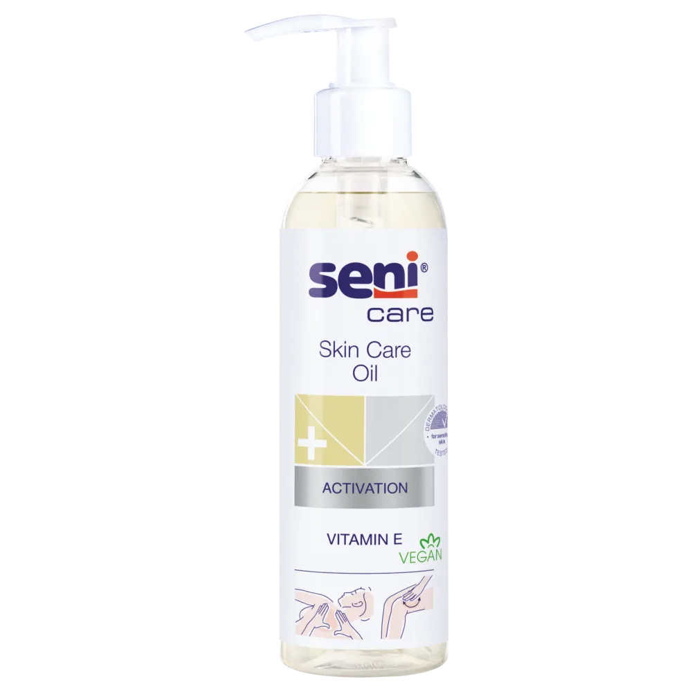 at the end of the bath, you can add a small amount of Seni Care oil to the water – it will perfectly moisturise dry skin.
