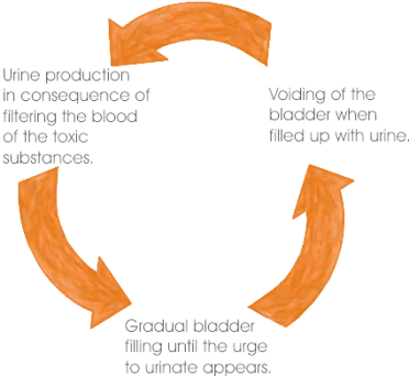 The urine is gathered in the bladder which expands in the process. When there is about 200–300 ml of urine collected, the receptors in the bladder’s walls send a signal which triggers the urge to urinate. A healthy person with a correctly functioning urinary system is able to control bladder voiding and may postpone this moment if necessary.
